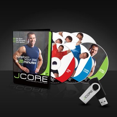 The JCORE Accelerated Body Transformation System is a hybrid conditioning and training program that blends incredibly effective cardiovascular, strength, agility and core balance exercises. This unique program has rewritten the standard for weight loss and healthy living. Now, in just 20 MINUTES a day, 4 DAYS a week — with a TOTAL WORKOUT TIME OF 8 HOURS over 40 days — the JCORE program gives you the weight loss and strengthening results you demand! Compare that to many programs that require you to workout 8 hours each and every week to see any progress.